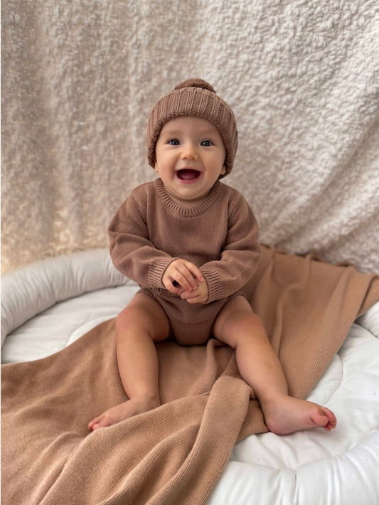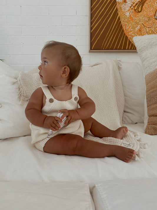 Organic Cotton Knit Romper - Natural