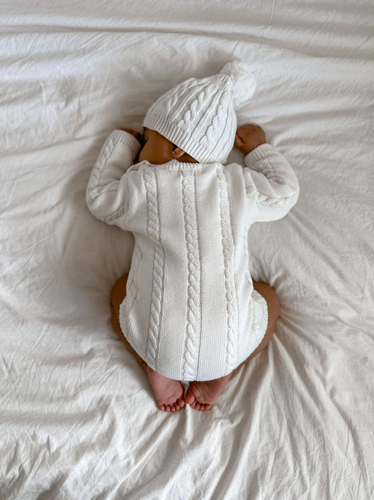 Organic Cotton Classic Knit Romper - Milk
